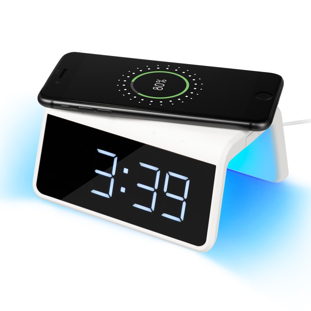 Настольные часы Flame с беспроводной зарядкой и цветной подсветкой - эксклюзивная модель Portobello.