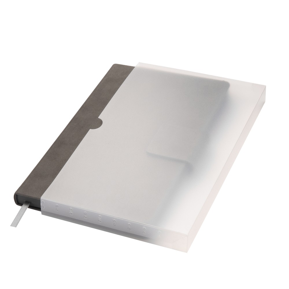 Недатированный ежедневник Ritz сочетает в себе элегантность и функциональность. Твердая обложка из высококачественной искусственной кожи с бархатистой текстурой, напоминающей нубук, приятна на ощупь.