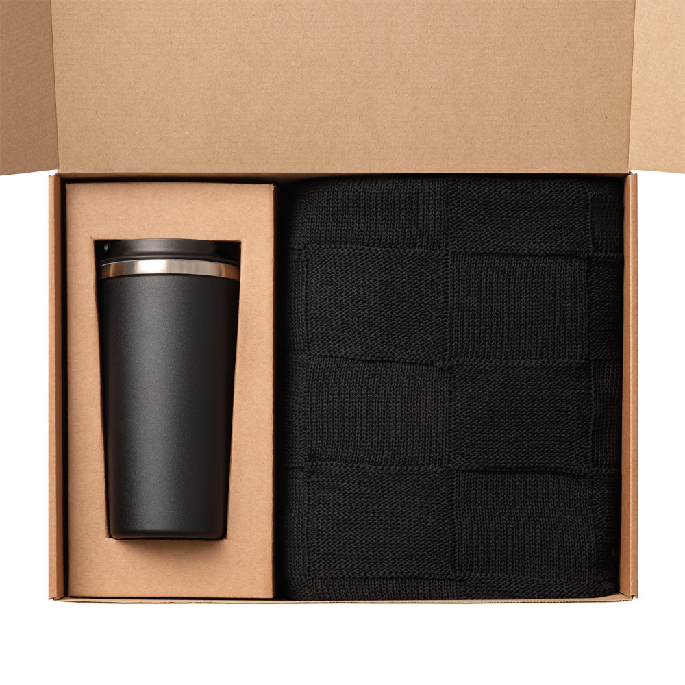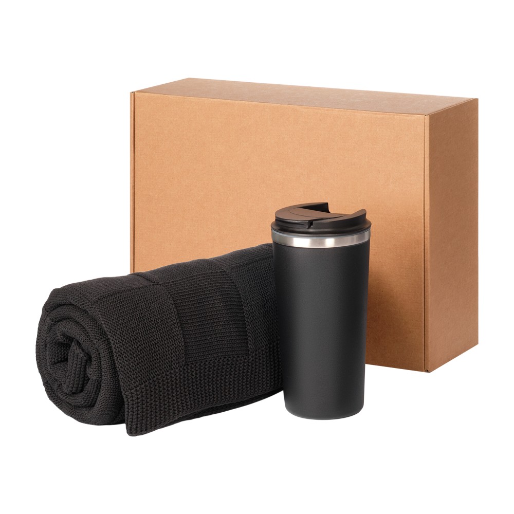 Подарочный набор Palermo, Cella, черный (плед, термокружка)