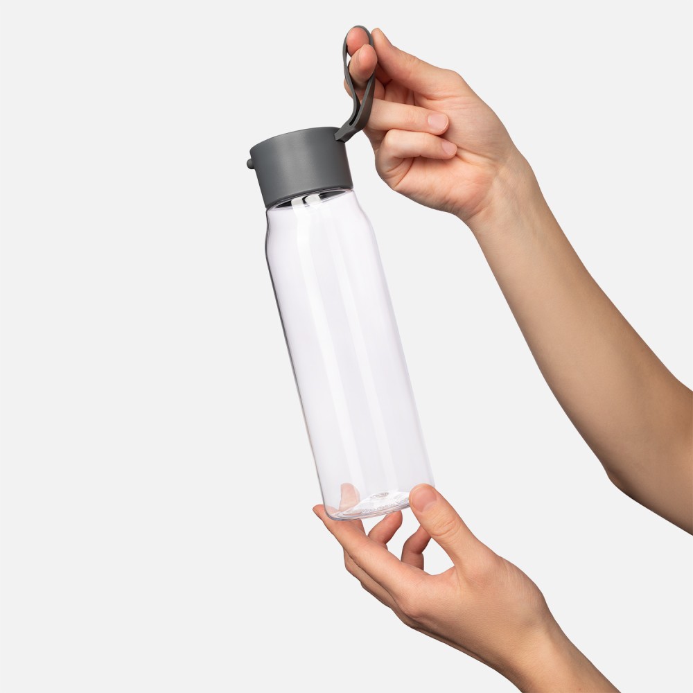 Благодаря прозрачному корпусу, вам всегда понятно, сколько жидкости осталось в бутылке. Оптимальный объем и вес также позволяют разместить ее в небольшой рюкзак или сумку.