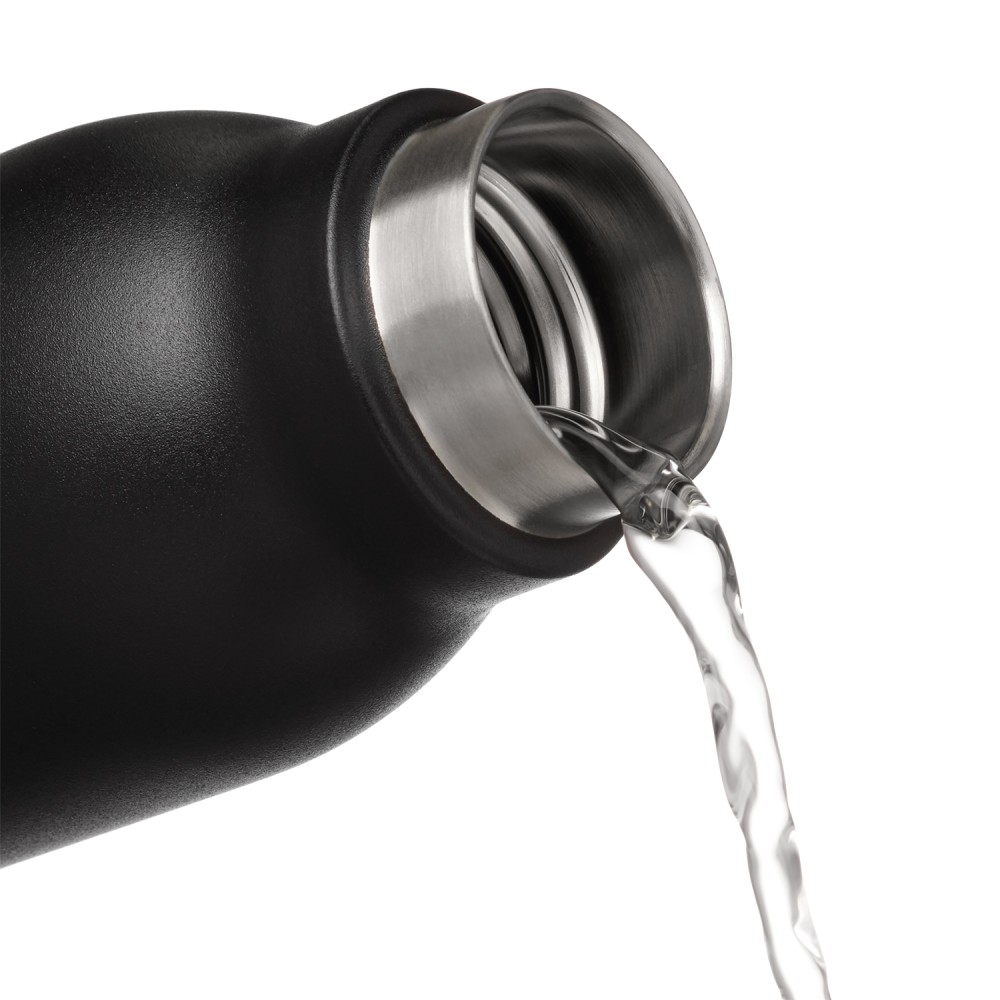 Термобутылку классической формы удобно брать с собой в офис, спортзал, на пробежку или в поход. Крышка в цвет корпуса, полностью литой корпус бутылки, вакуумная герметичная конструкция из двухслойной высоколегированной стали марки 304, порошковое покрытие корпуса и крышки.