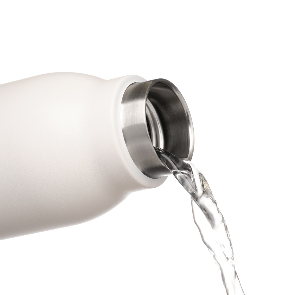 Термобутылку классической формы удобно брать с собой в офис, спортзал, на пробежку или в поход. Крышка в цвет корпуса, полностью литой корпус бутылки, вакуумная герметичная конструкция из двухслойной высоколегированной стали марки 304, порошковое покрытие корпуса и крышки.