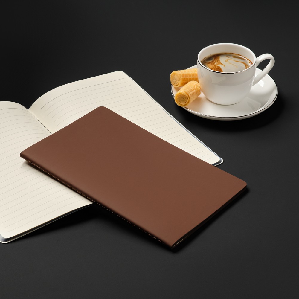 Внутри — светло-кремовые страницы с деликатной линовкой и аккуратно скругленными уголками. Цветной срез блока, гармонирующий с оттенком обложки, добавляет особый шарм. Alpha slim станет стильным аксессуаром и верным спутником для ваших мыслей и идей.