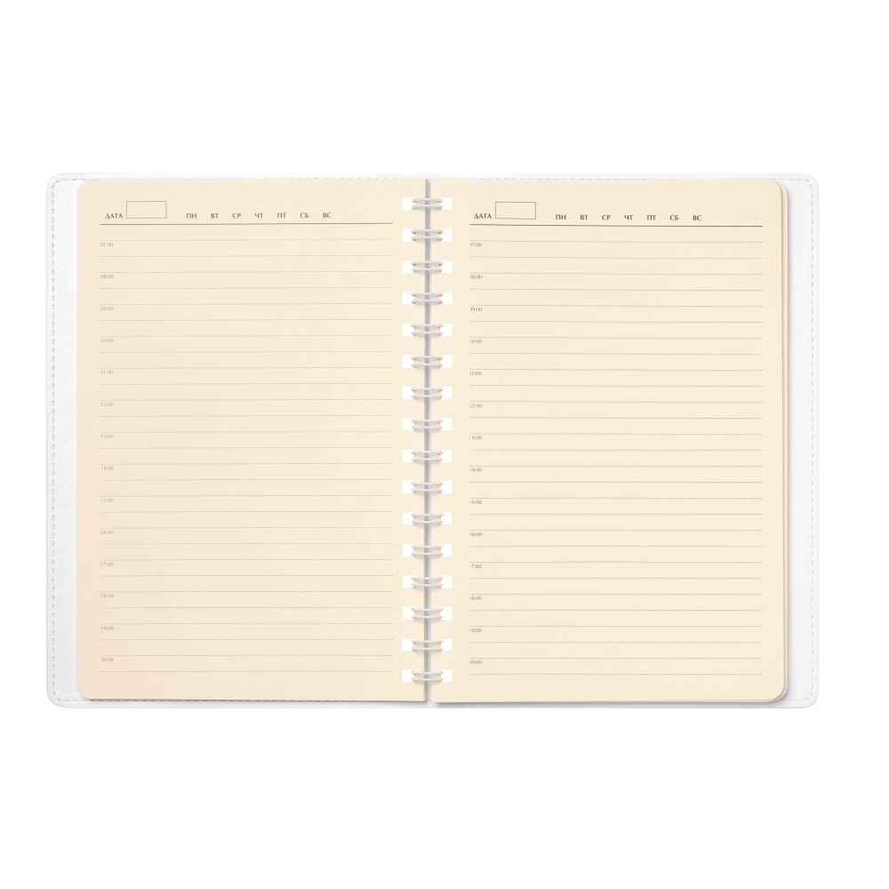 Надежная полускрытая пружина в цвет обложки обеспечивает удобство использования и долговечность. Этот ежедневник не только поможет вам эффективно планировать дела, но и станет стильным аксессуаром, подчеркивающим ваш индивидуальный стиль.