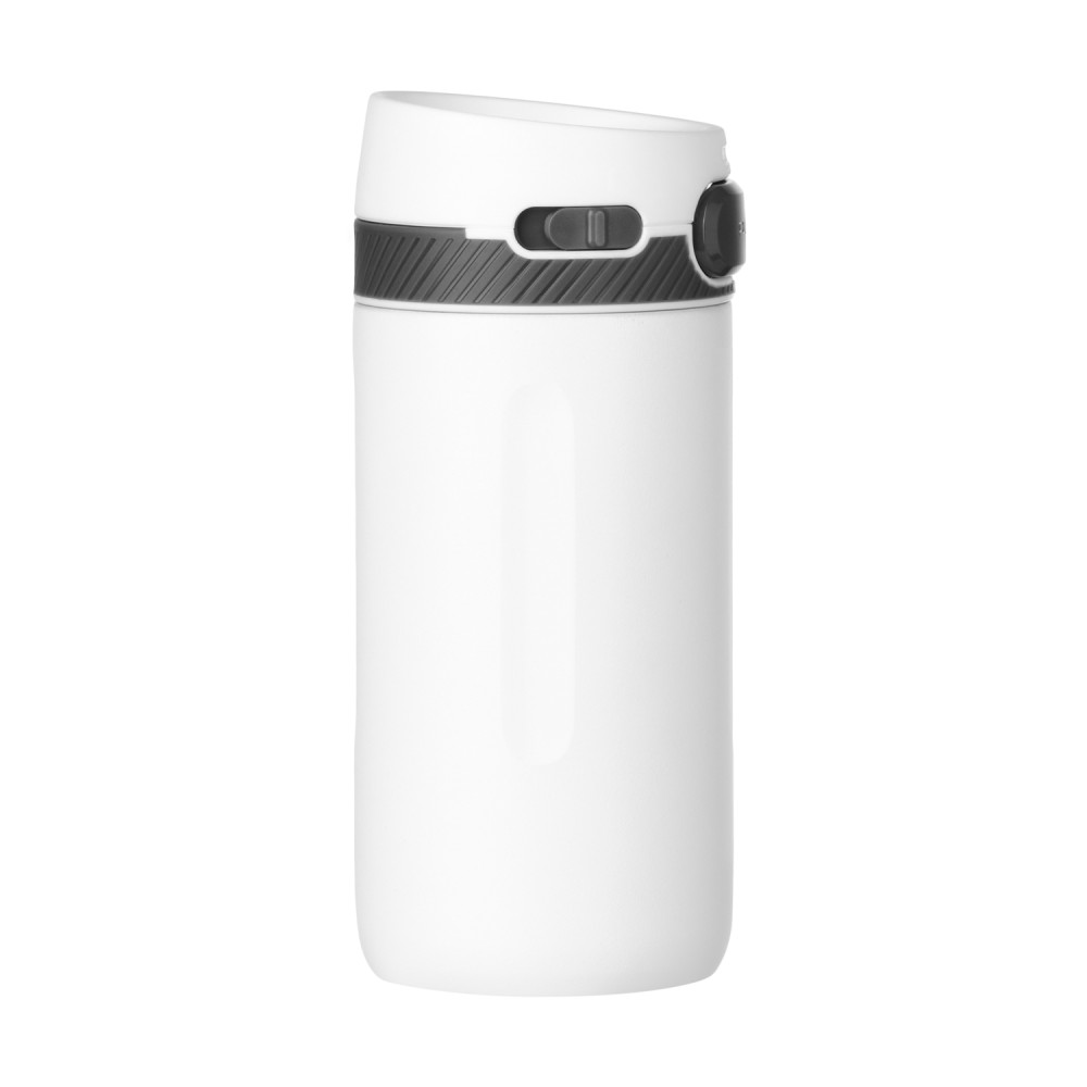Герметичная термокружка Toledo объемом 415 мл. Система OneHandOpen позволяет пользоваться кружкой одной рукой, крышка автоматически закрывается, стоит вам отпустить кнопку. От случайного нажатия кнопка защищена замком-фиксатором. Вакуумная герметичная конструкция из двухслойной высоколегированной стали 304 марки. Корпус бутылки, полностью литой с порошковым напылением.