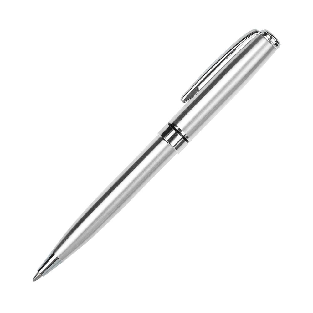 В комплекте с ежедневником-портфолио Clip NEO синего цвета поставляется элегантная шариковая ручка Tesoro серебряного цвета.