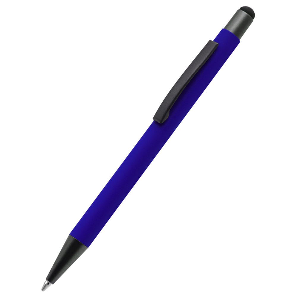 Бархатистая на ощупь ручка Story сотф-тач сделана из металла. Синие чернила, имеет стилус для взаимодействия с портативными устройствами. Толщина пишущего узла 1 мм, длина письма рассчитана на 700 м. Цвет по PANTONE® (максимально приближен): 7687 C.