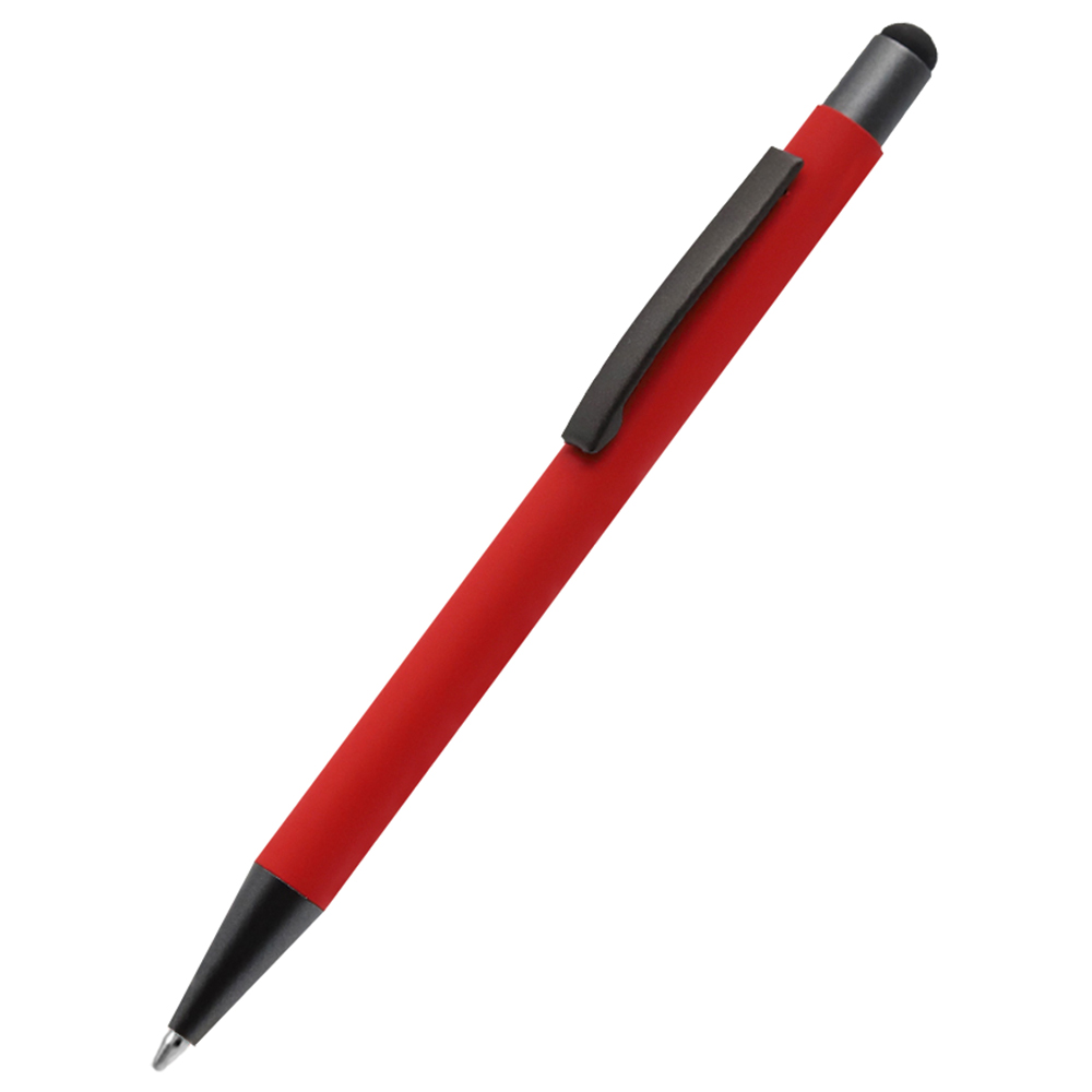 Бархатистая на ощупь ручка Story сотф-тач сделана из металла. Синие чернила, имеет стилус для взаимодействия с портативными устройствами. Толщина пишущего узла 1 мм, длина письма рассчитана на 700 м. Цвет по PANTONE® (максимально приближен): 186 C.