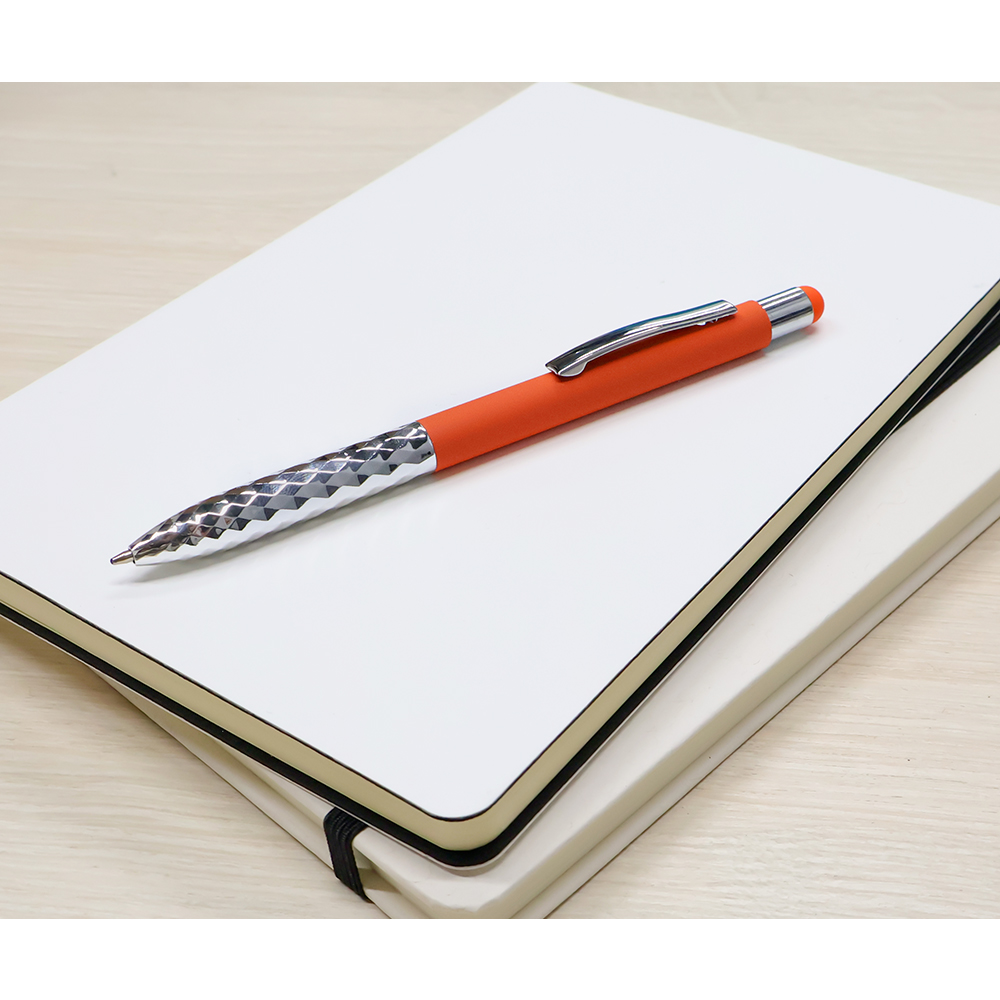 Ручка Party выделяется волнистой текстурой поверхности в области хвата. Это не только придаёт ей игривый оригинальный вид, но и подарит владельцу приятные тактильные ощущения. Эта часть ручки сделана из пластика. Верхняя часть ручки сделана из металла и выполнена в софт-тач. Чернила синего цвета, толщина письма 1,0мм, стержень типа Паркер — это гарантия красивой линии письма и удобства пользования.