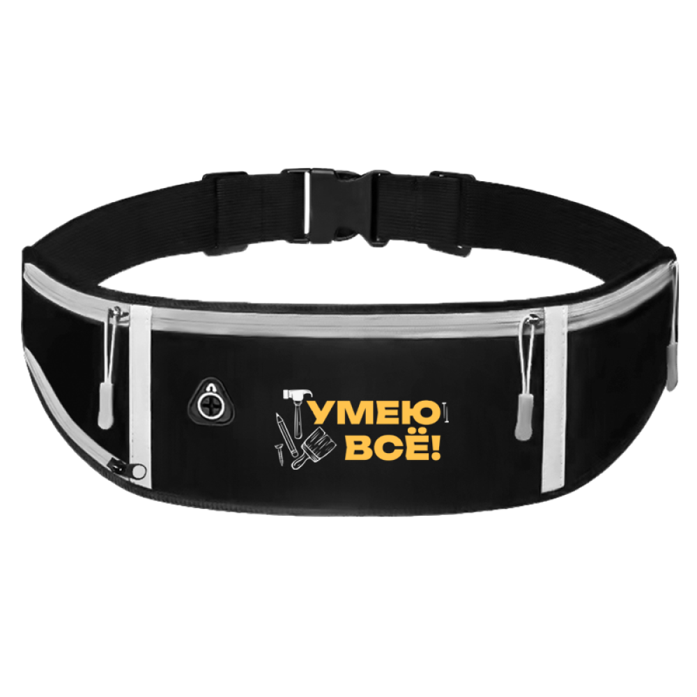 В основное отделение помещается смартфон и есть специальный слот для наушников. Два боковых кармана помогают оптимально разместить все мелочи, а в благодаря дополнительной молнии и сетке можно закрепить небольшую бутылку с водой.