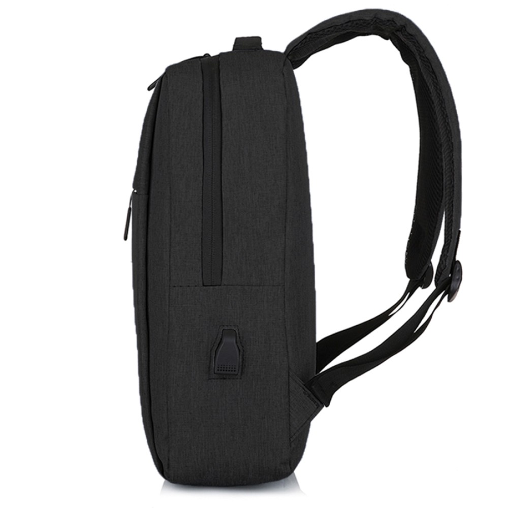 Одно большое отделение закрывается молнией со скрытым звеном. Внутри большой уплотненный карман для ноутбука 15,6 дюймов с клапаном на велькро и карман-органайзер для мелких аксессуаров. На передней стенке два больших скрытых кармана на молнии, боковой открытый карман и USB-разъем с проводом для подключения внешнего аккумулятора. Уплотнённая короткая ручка для дополнительного комфорта рук. Уплотнённые плечевые ремни регулируются по длине.