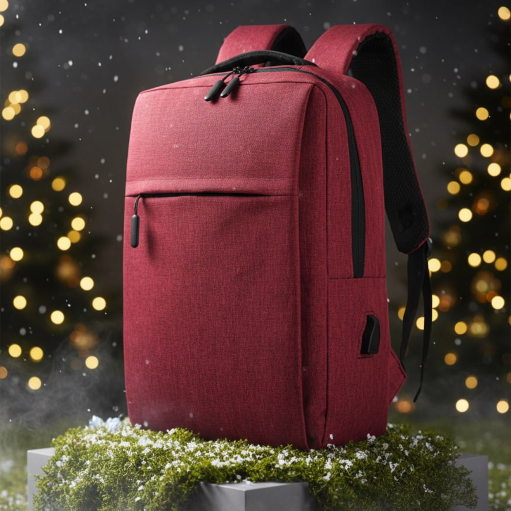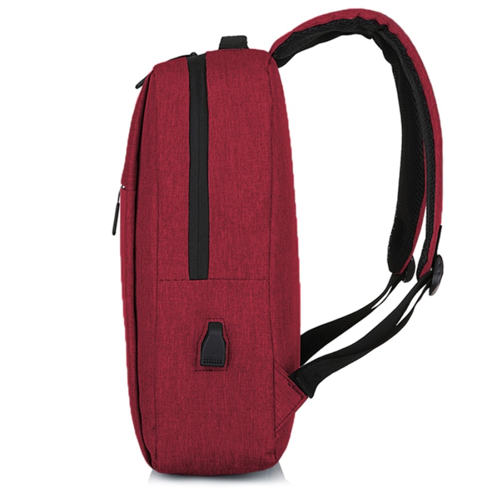 Одно большое отделение закрывается молнией со скрытым звеном. Внутри большой уплотненный карман для ноутбука 15,6 дюймов с клапаном на велькро и карман-органайзер для мелких аксессуаров. На передней стенке два больших скрытых кармана на молнии, боковой открытый карман и USB-разъем с проводом для подключения внешнего аккумулятора. Уплотнённая короткая ручка для дополнительного комфорта рук. Уплотнённые плечевые ремни регулируются по длине.