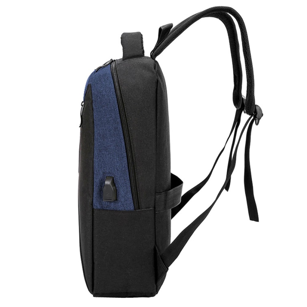 На передней стенке большой диагональный карман на молнии с открытым карманом внутри. Сбоку два открытых кармана и USB-разъем с проводом для подключения внешнего аккумулятора.
