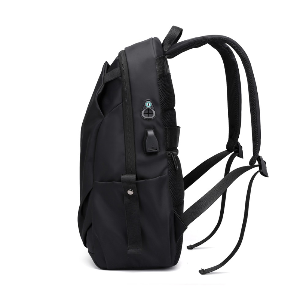 Сбоку два небольших объёмных открытых кармана закрывающиеся тесьмами на магнитных кнопках, накладка с прорезью для наушников и USB-разъем с проводом для подключения внешнего аккумулятора который при необходимости можно спрятать под небольшой молнией внутри.