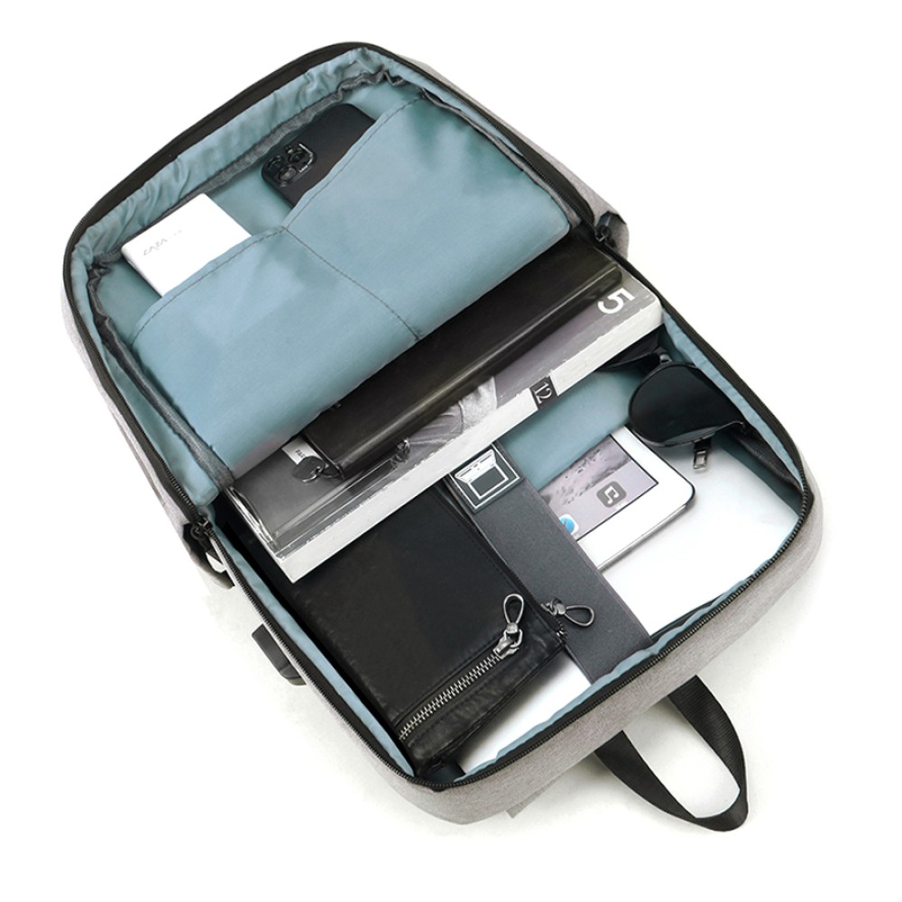 Одно большое отделение закрывается молнией со скрытым звеном. Внутри большой уплотненный карман для ноутбука 15 дюймов с клапаном-резинкой на велькро и карман-органайзер для мелких аксессуаров. На передней стенке большой карман с клапаном на велькро. Сбоку открытый карман и USB-разъем с проводом для подключения внешнего аккумулятора. Уплотнённая короткая ручка для дополнительного комфорта рук. Уплотнённые плечевые ремни регулируются по длине.