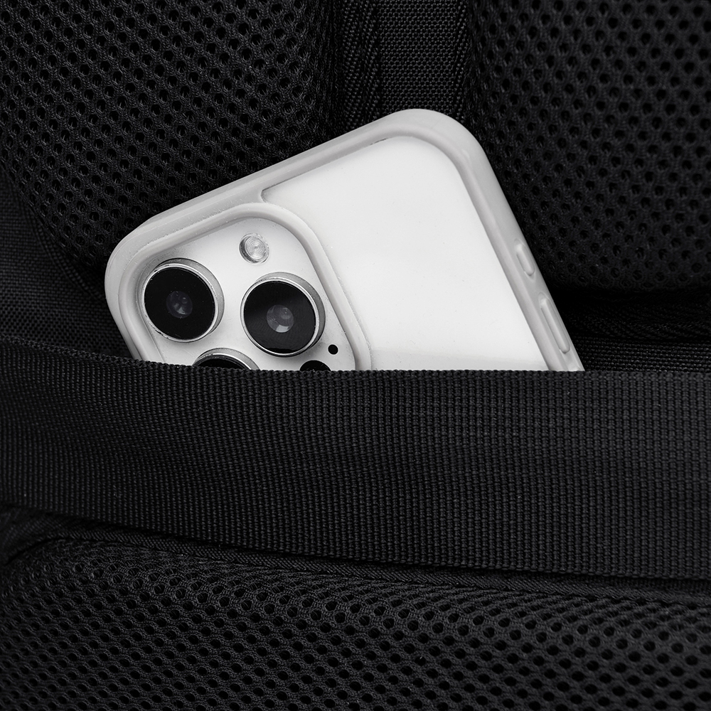 Двойное уплотнение анатомических накладок на задней стенке распределяет его вес и снижают нагрузку на позвоночник. Гигроскопичная вентилируемая трехслойная 3D-сетка на накладках задней стенки и подкладке плечевых ремней предотвращает скольжение и обеспечивает отличную вентиляцию и комфорт при контакте с кожей и одеждой.