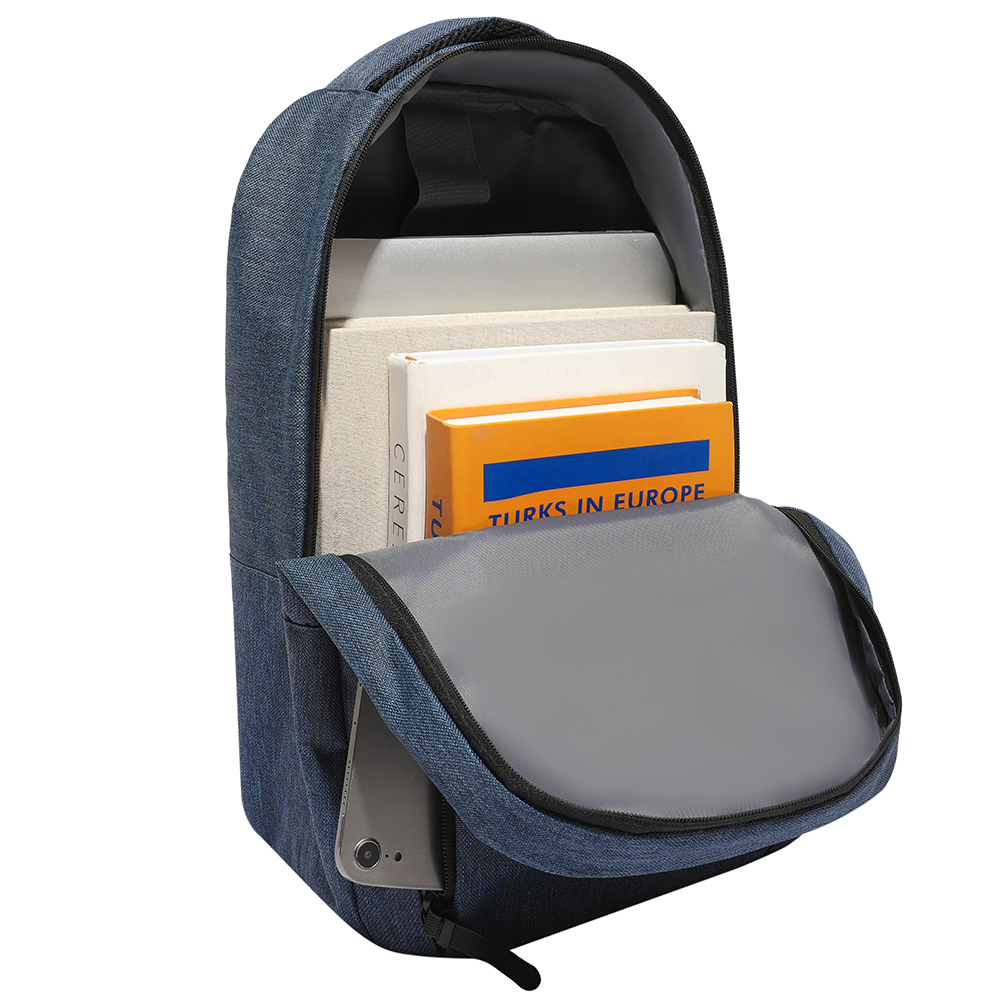 Одно большое отделение закрывается на молнию. Внутри большой уплотненный карман для ноутбука 15,6 дюймов с клапаном-резинкой на велькро и карман для планшета до 10 дюймов.