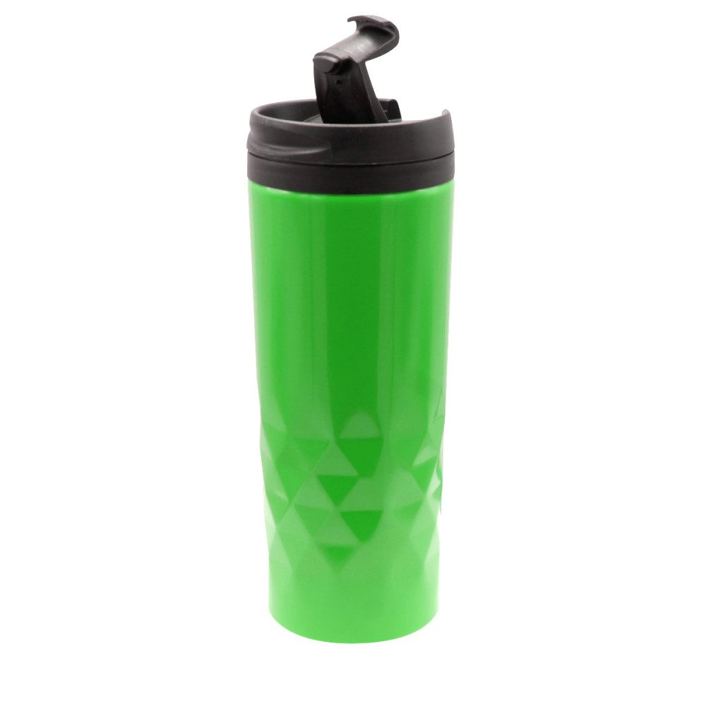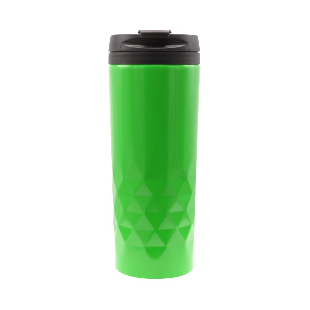 Стильная термокружка изготовлена из нержавеющей стали и дополнена оригинальными геометрическими деталями. Внутренняя колба сделана из пластика. Удобная крышка не даст расплескаться напитку. Объем термокружки – 500 мл.