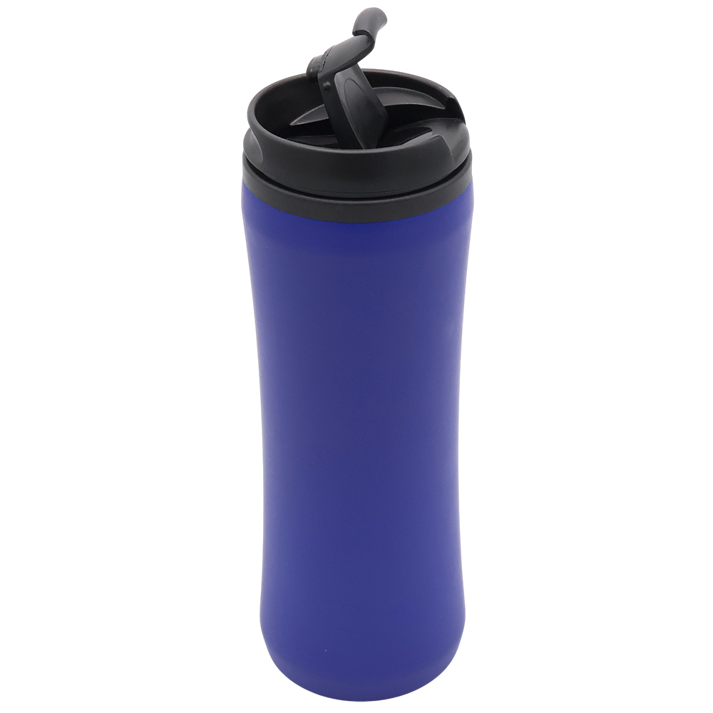 Термокружка изготовлена из нержавеющей стали с покрытием софт тач. Внутренняя колба сделана из пластика. Вакуумная конструкция. Откидной клапан позволяет пить, не снимая крышку, что помогает дольше сохранить начальную температуру напитка. Объем термокружки – 500 мл.