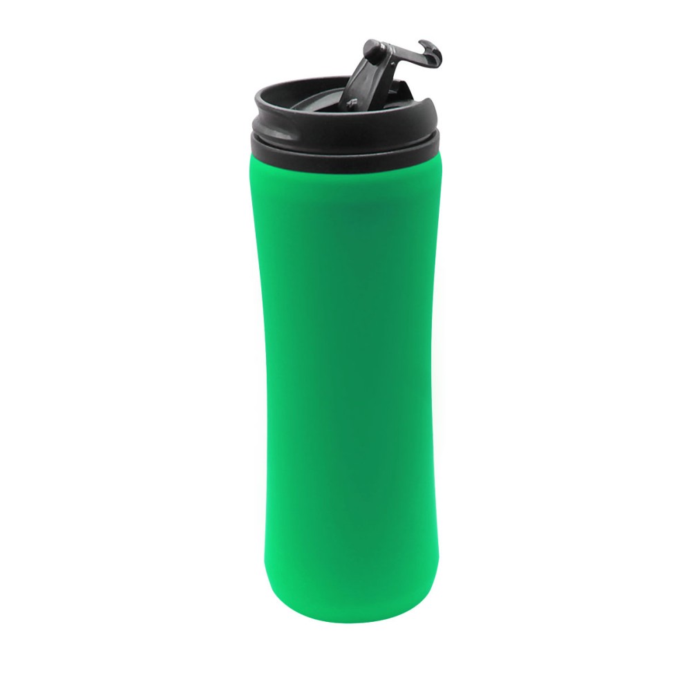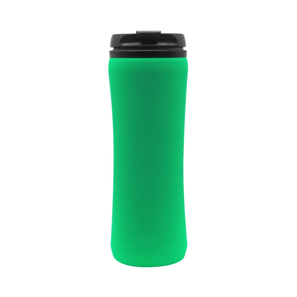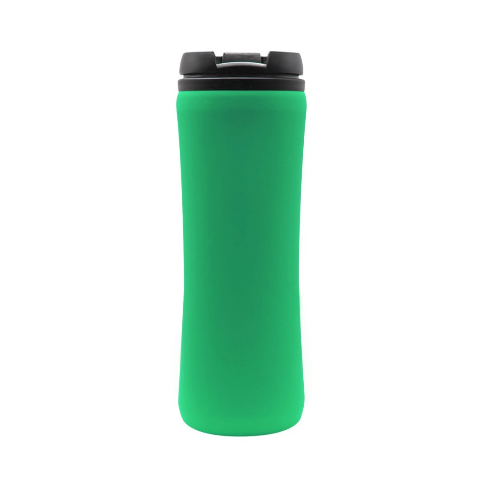 Термокружка изготовлена из нержавеющей стали с покрытием софт тач. Внутренняя колба сделана из пластика. Вакуумная конструкция. Откидной клапан позволяет пить, не снимая крышку, что помогает дольше сохранить начальную температуру напитка. Объем термокружки – 500 мл.