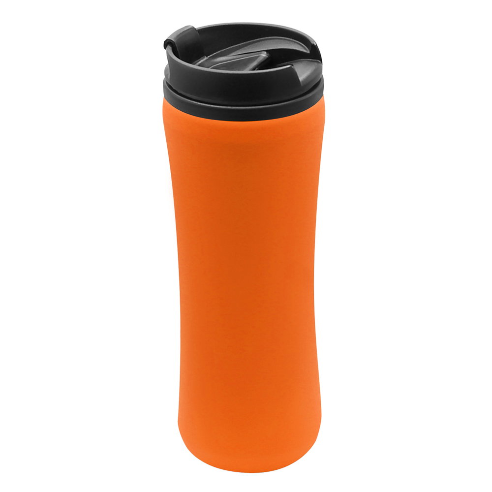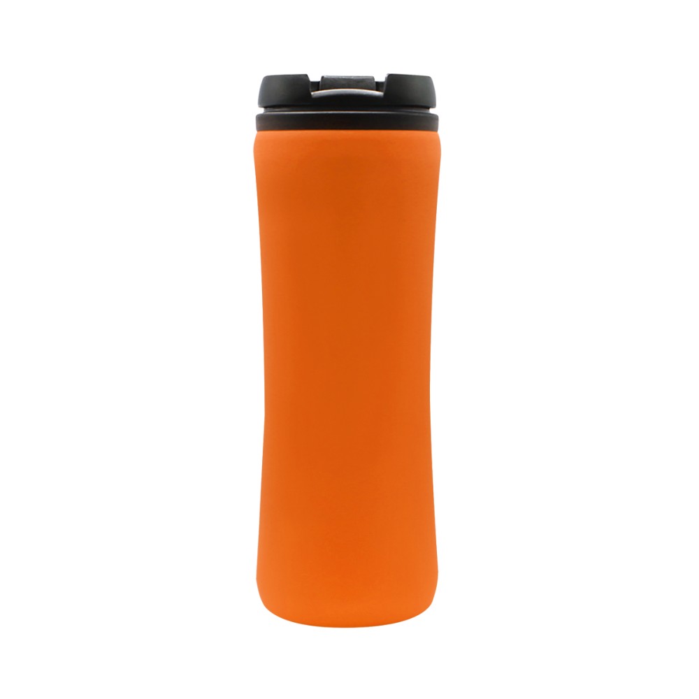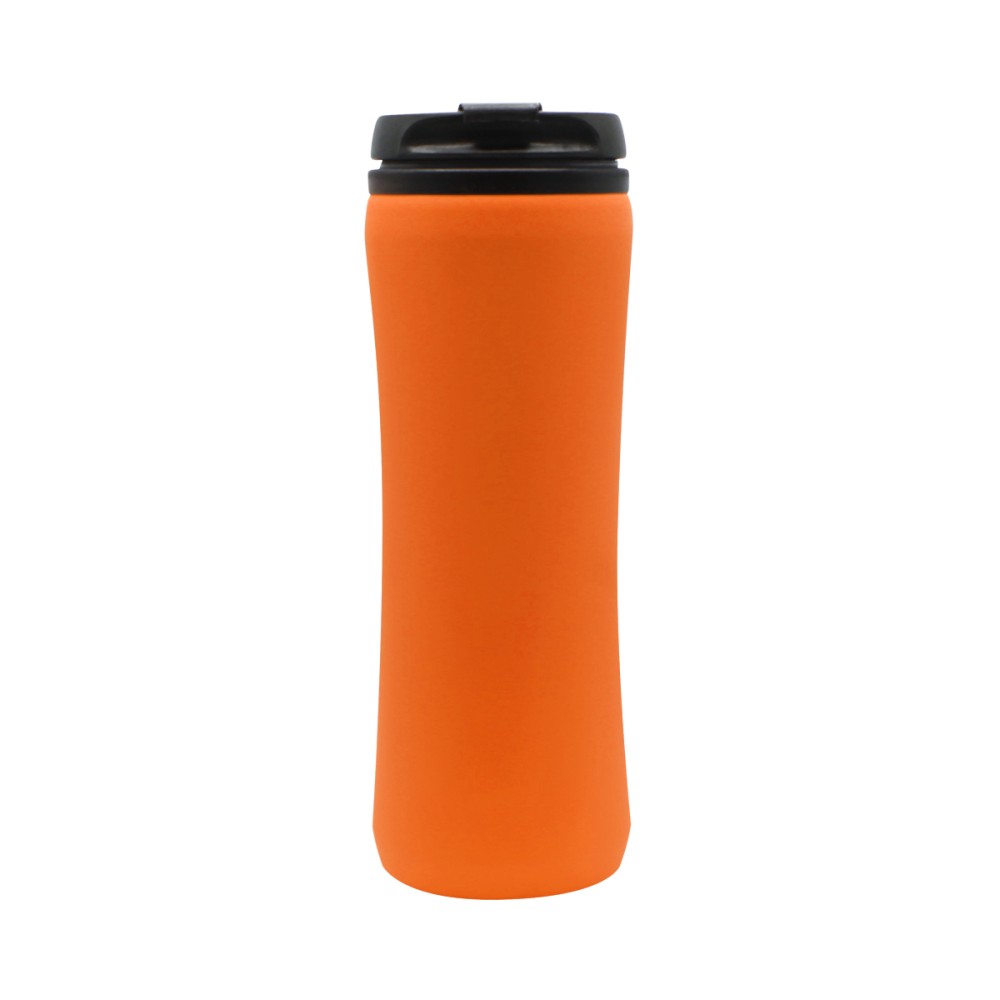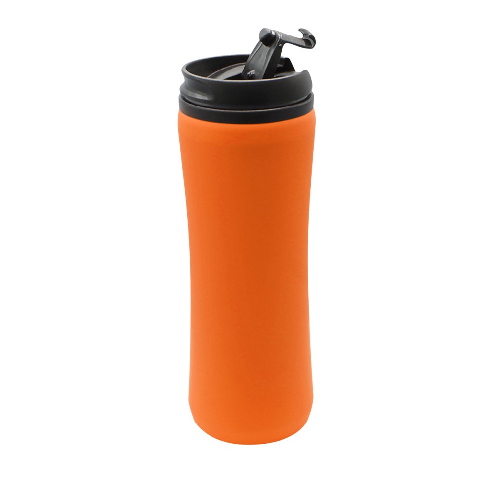 Термокружка изготовлена из нержавеющей стали с покрытием софт тач. Внутренняя колба сделана из пластика. Вакуумная конструкция. Откидной клапан позволяет пить, не снимая крышку, что помогает дольше сохранить начальную температуру напитка. Объем термокружки – 500 мл. Цвет максимально приближен к Pantone 021C.