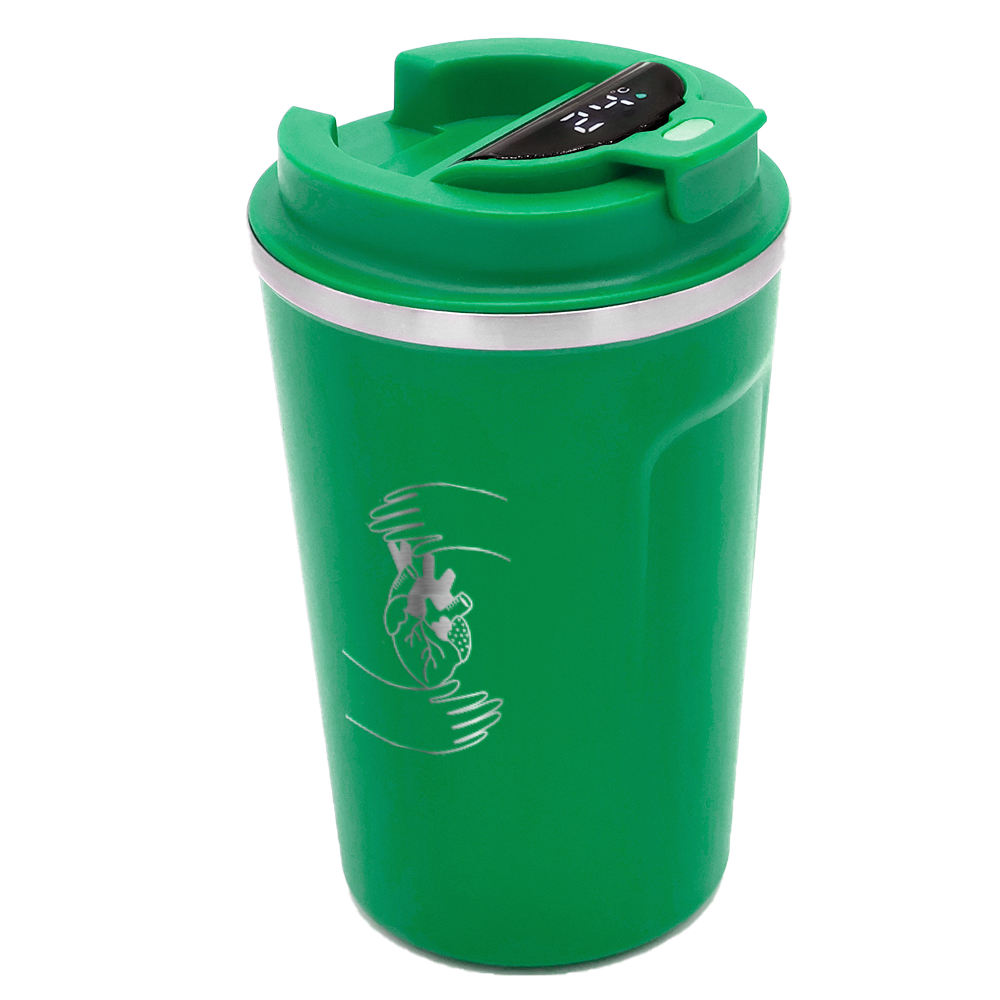 Термокружка Moon с дисплеем выполнена из пищевой нержавеющей стали. Имеет двойные стенки с вакуумной изоляцией, а крышка изготовлена из пищевого безопасного для человека пластика. Термокружка Moon не только сохраняет ваши напитки горячими, но и показывает температуру напитка! Уникальная особенность данной термокружки – наличие сенсорного индикатора температуры, расположенного в крышке. Чтобы узнать температуру напитка внутри кружки, достаточно прикоснуться к поверхности крышки. Работает от 1 батарейки типа CR2032 (в комплекте), которую в последующем можно самостоятельно заменить. Цвет максимально близкий к пантону 427C.