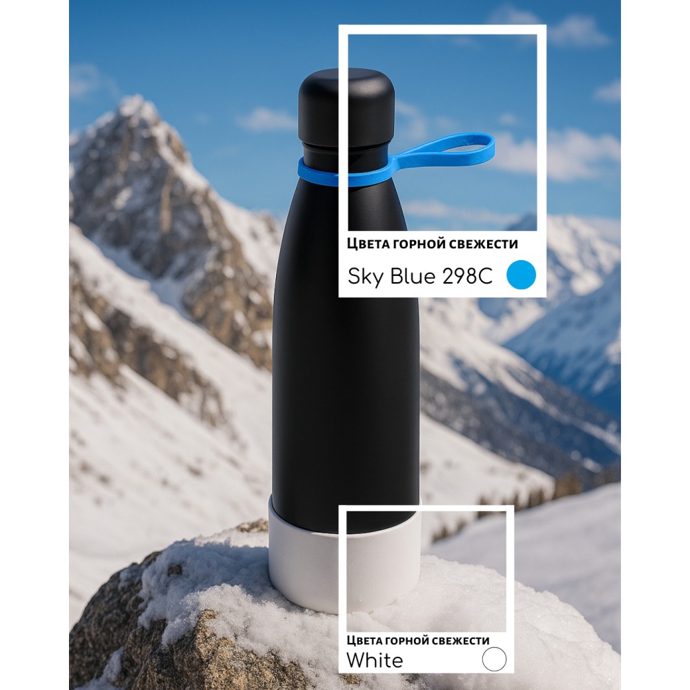 Термобутылка герметичная вакуумная Olivia To Go, чёрный/голубой/белый