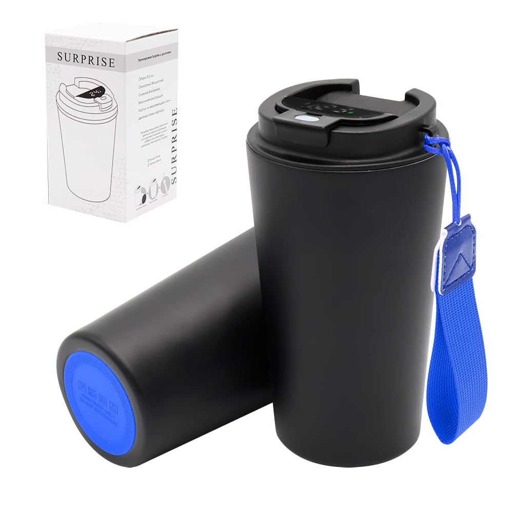 Термокружка Surprise To Go с индикатором, чёрная/синяя