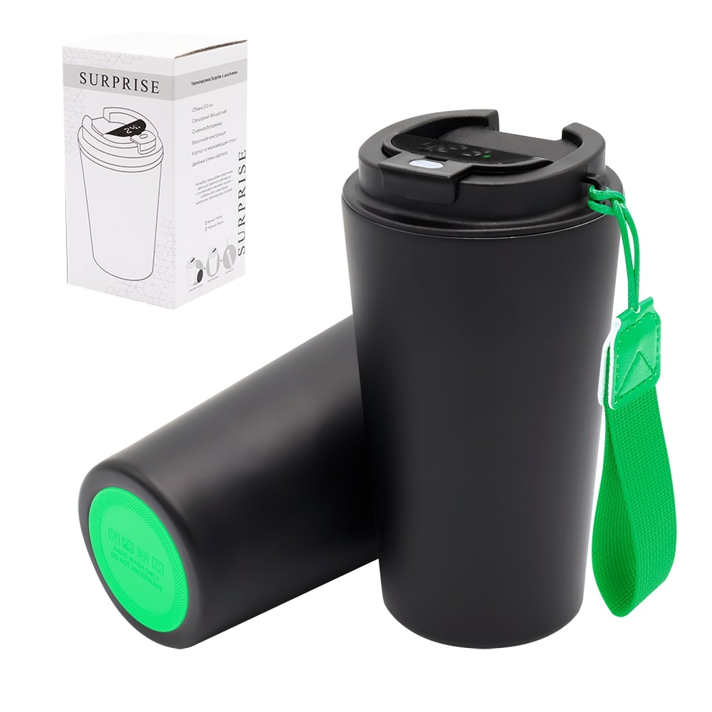 Технические характеристики Термокружка Surprise To Go с индикатором, чёрная/зелёная