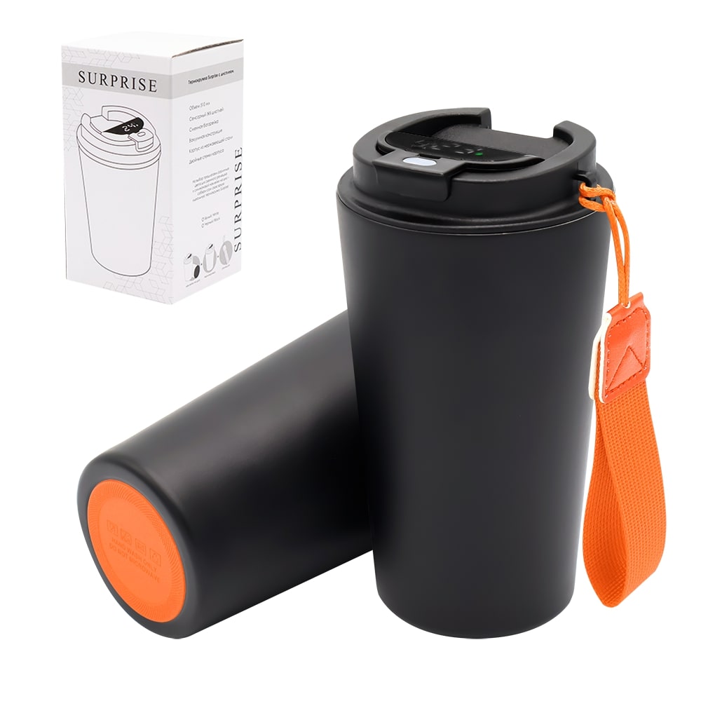 Термокружка Surprise To Go с индикатором, чёрная/оранжевая