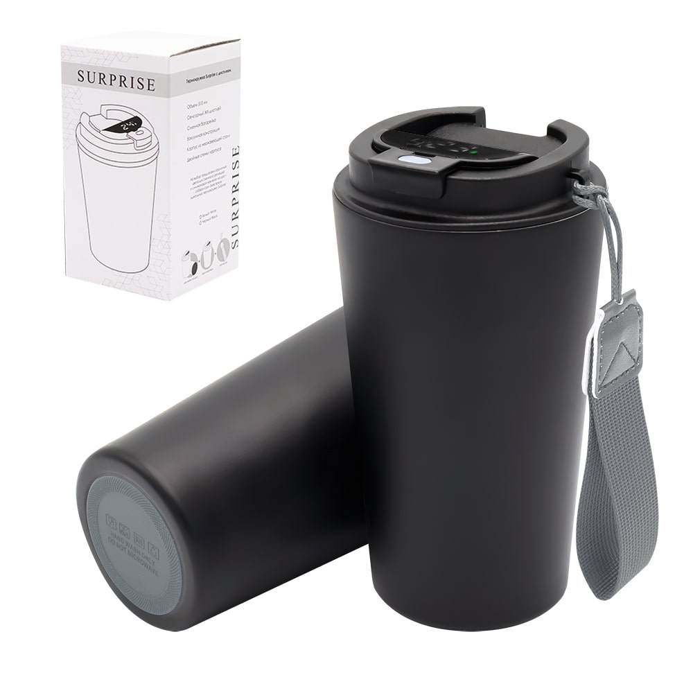 Термокружка Surprise To Go с индикатором, чёрная/серая
