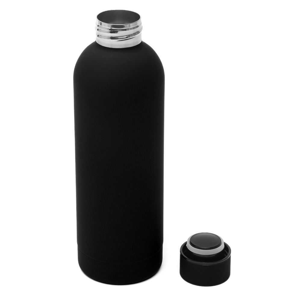 Представляем вам нашу стильную и модную термобутылку объемом 500 мл! Она не только прекрасно сохраняет температуру ваших любимых напитков, но и станет ярким акцентом вашего стиля. Бутылка имеет мягкое прорезиненное покрытие софт-тач, благодаря чему ее приятно держать в руке.