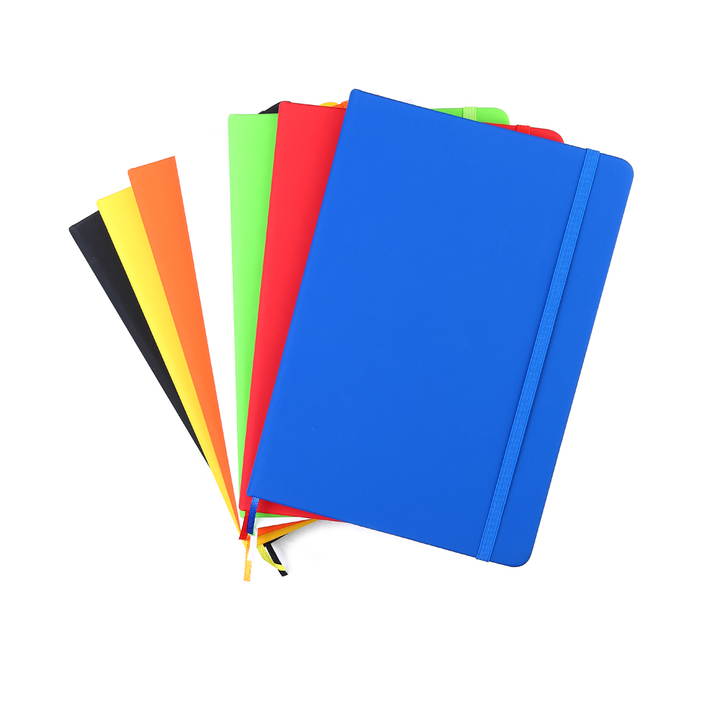 Блокнот формата А5 с твердым покрытием из PU-материала с имитацией рисунка кожи, с эластичной застежкой для закрытия и текстильной закладкой в цвет блокнота, 192 страницы/ 96 листов, плотность 70г/м, страницы с черными линиями. Цвет по PANTONE® (максимально приближен): 186C.