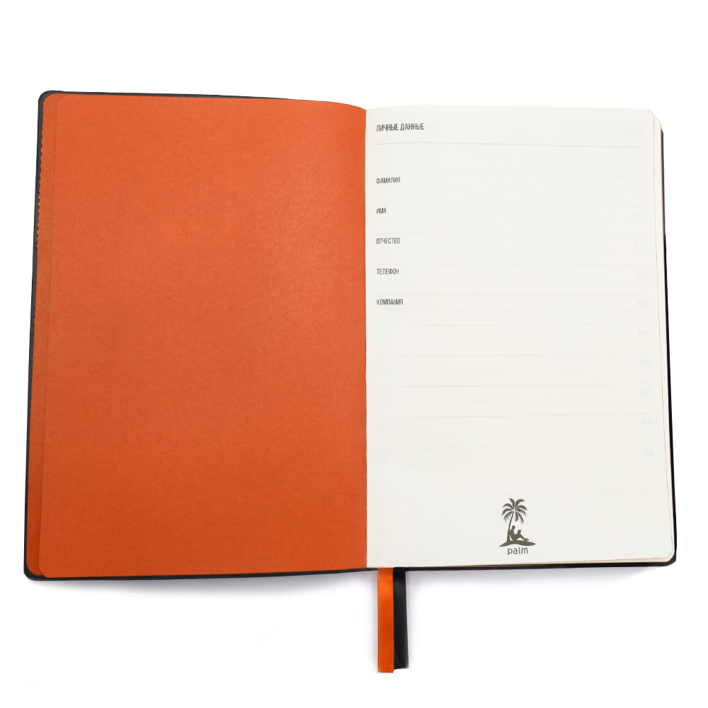 Ежедневник A5 недатированный Efemero в мягком переплёте, черно-оранжевый