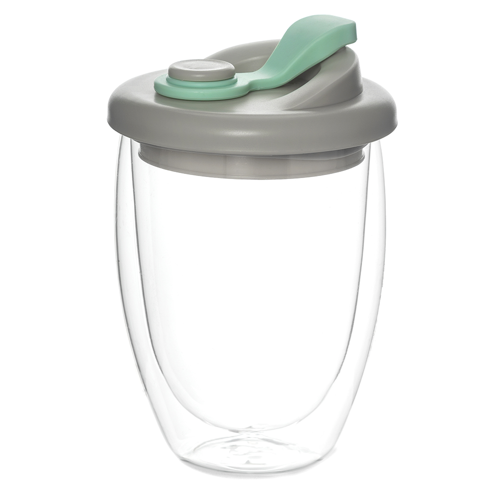 Стакан стеклянный Lotos с двойными стенками и крышкой, бирюзовый