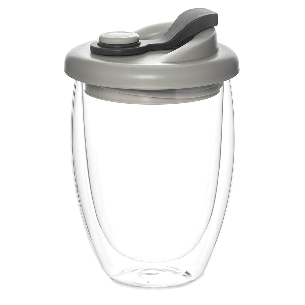 Стакан стеклянный Lotos с двойными стенками и крышкой, серый