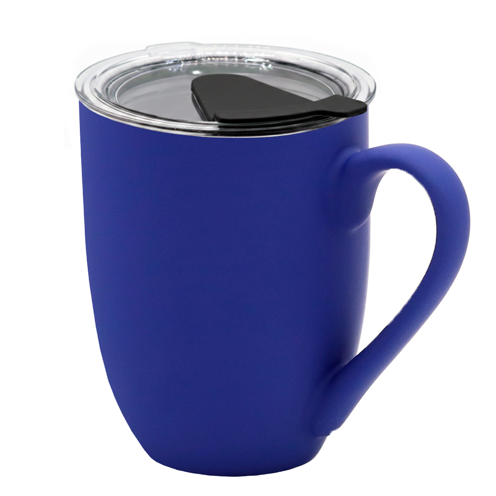 Кружка с крышкой Velvet Duo, софт-тач, тёмно-синяя/чёрная