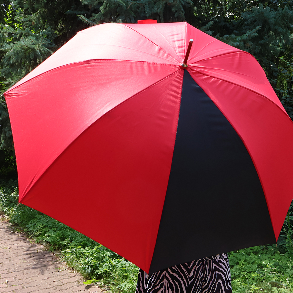 Яркий и запоминающийся зонт Vivo.Один клин зонта черного цвета. Цвет ручки, шахты и купола совпадают. Материал купола – эпонж. На таком материале вода превращается в капельки и скатывается, а сам зонт остается сухим. Спицы сделаны из стекловолокна. Размеры: диаметр купола - 103 см; длина в сложенном виде - 83,5 см. Вес: 400 г.