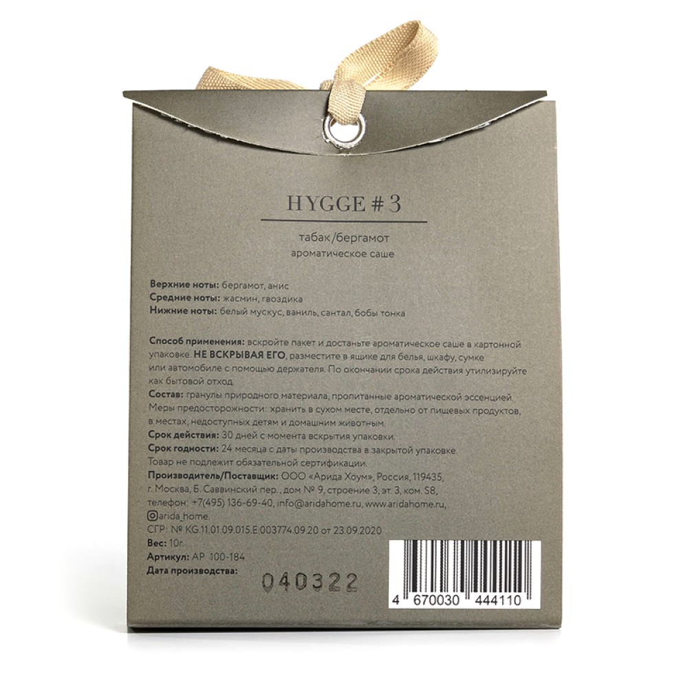 Аромасаше HYGGE #3 Табак/бергамот
