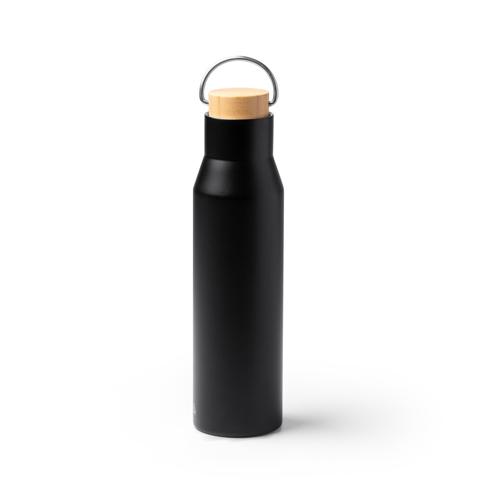 Бутылка-термос из нержавеющей стали 304 с двойной стенкой и бамбуковой крышкой. Емкость: 550 мл. Поставляется в дизайнерской эко-коробке.