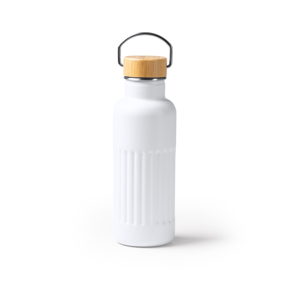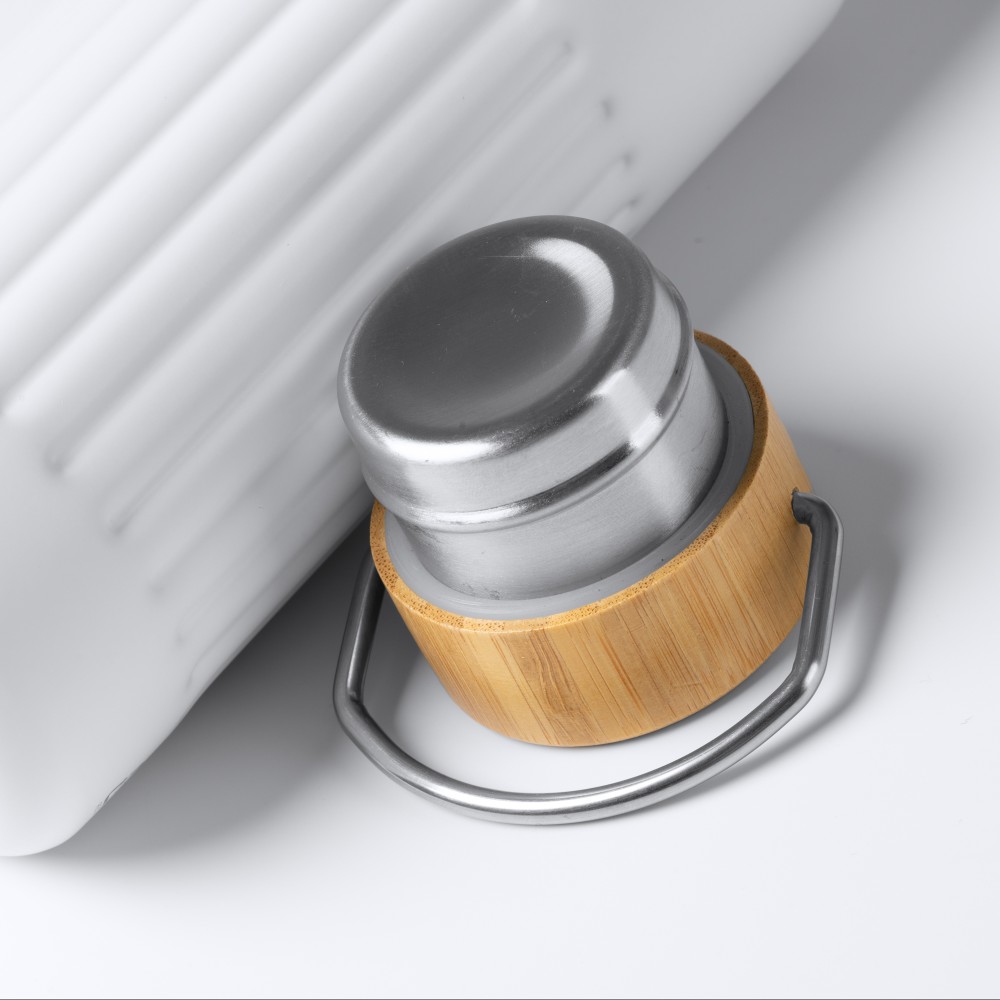 Бутылка-термос из переработанной нержавеющей стали с двойными стенками и бамбуковой крышкой. Емкость: 500 мл.