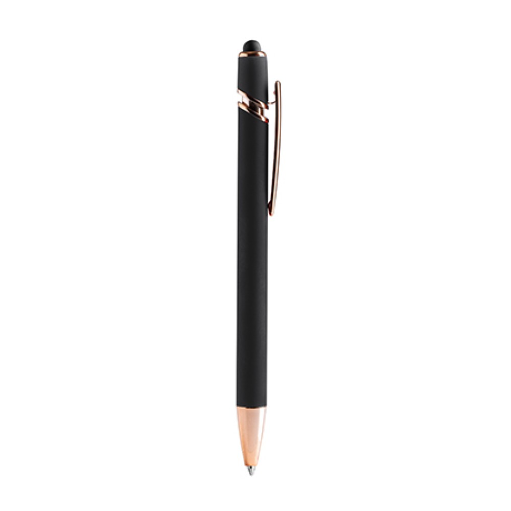 Софт-тач металлическая шариковая ручка с деталями из розового золота