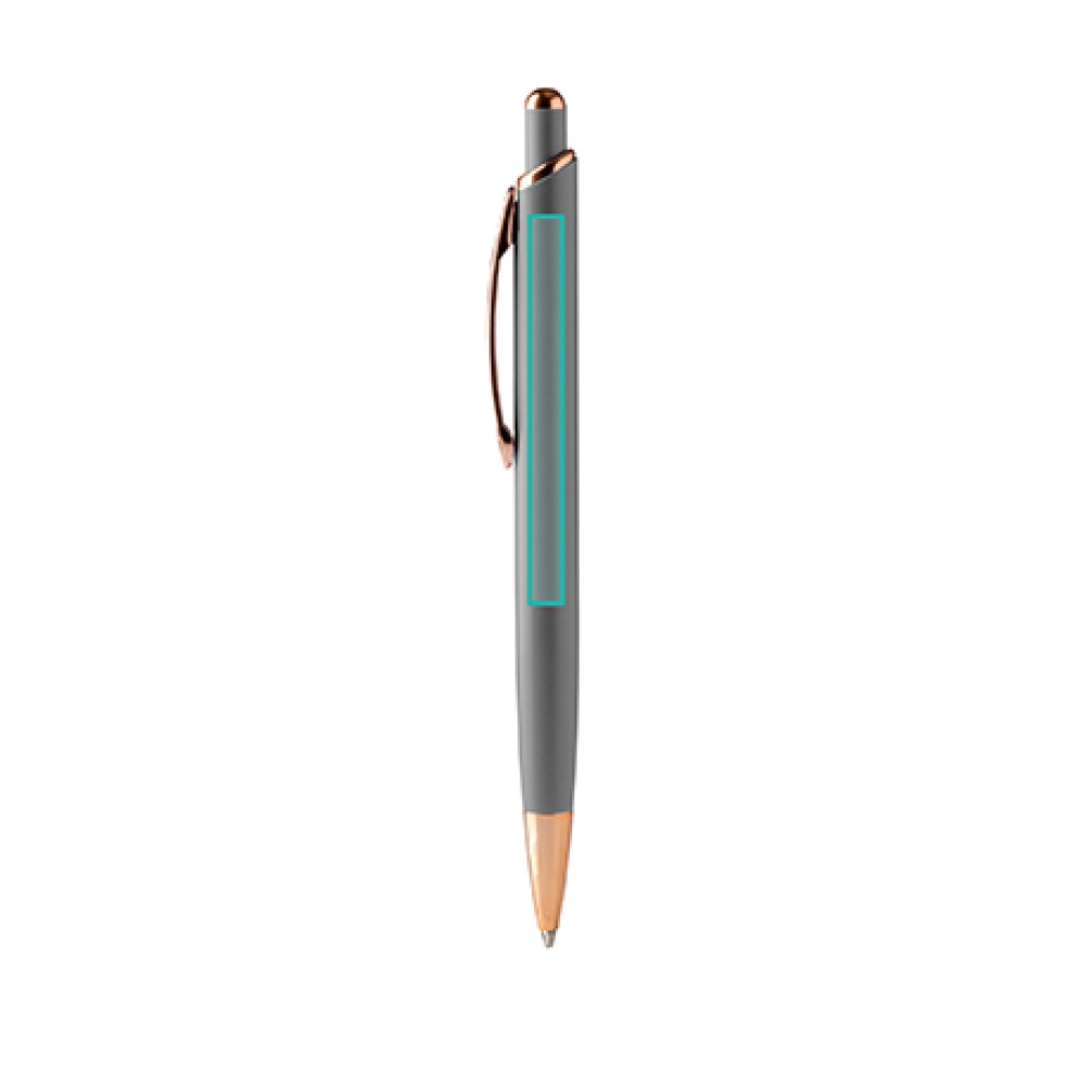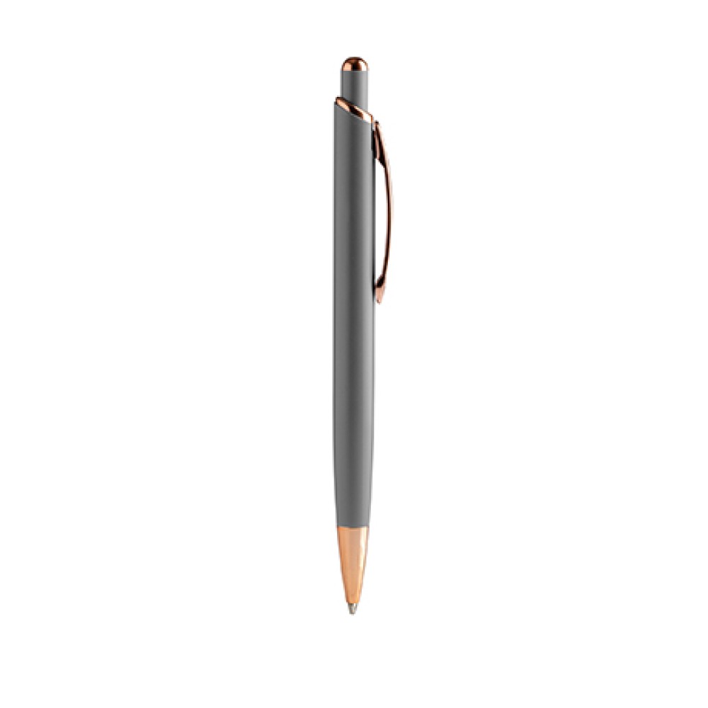 Шариковая ручка с матовой металлической структурой и деталями с медной отделкой.