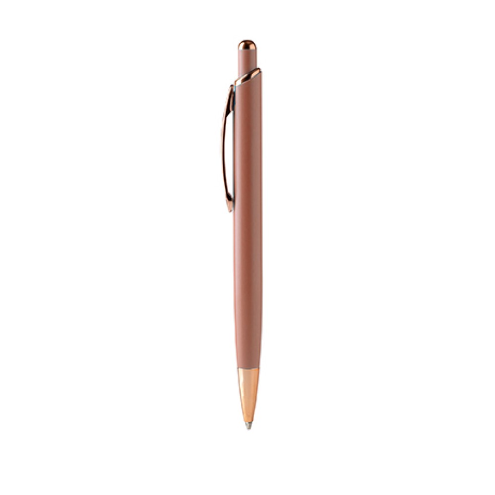 Шариковая ручка с матовой металлической структурой и деталями с медной отделкой.