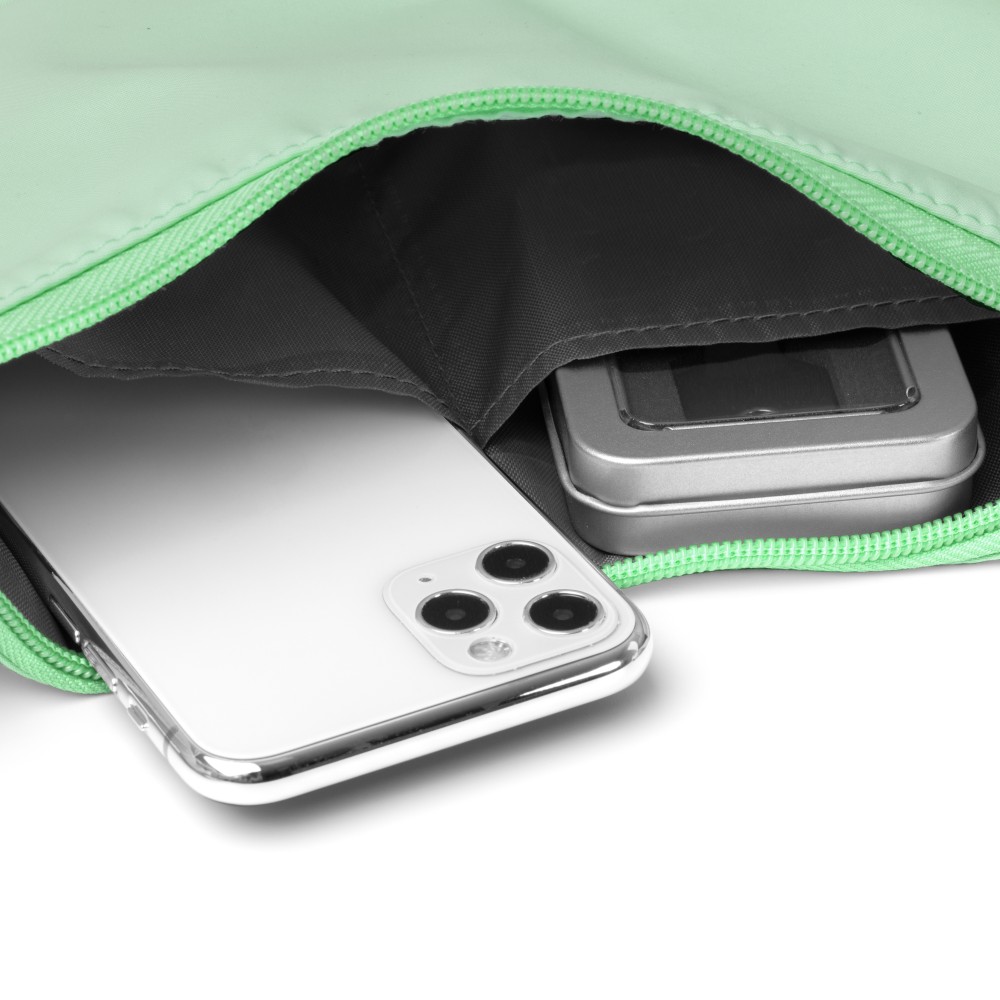 Сумка на плечо из переработанного водоотталкивающего нейлона с двумя внутренними карманами в основном отделении. Регулируемый ремень.