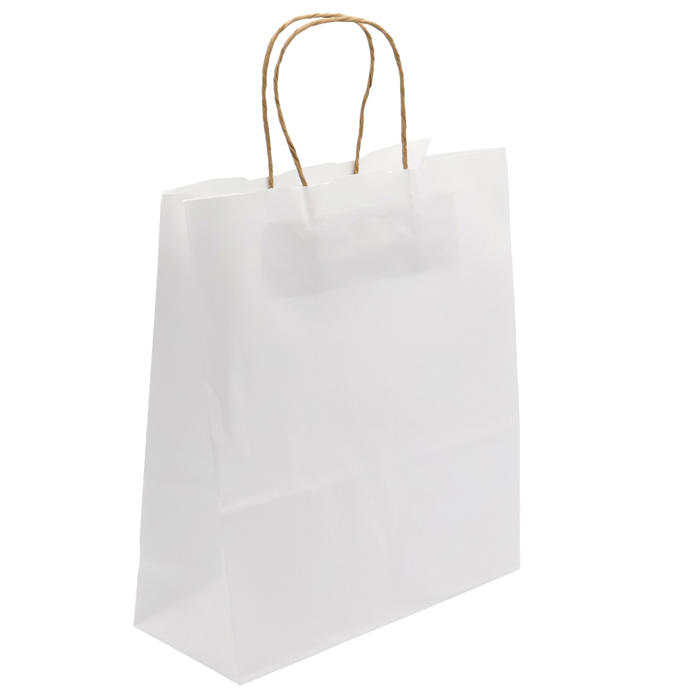 Бумажный пакет плотностью 110 г/м², с усиленными короткими ручками витой формы.