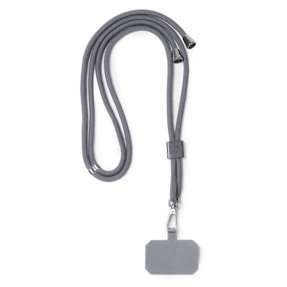 Держатель для мобильного телефона со шнуром из переработанного полиэстера RPET. Регулируемый ремень и карабин.