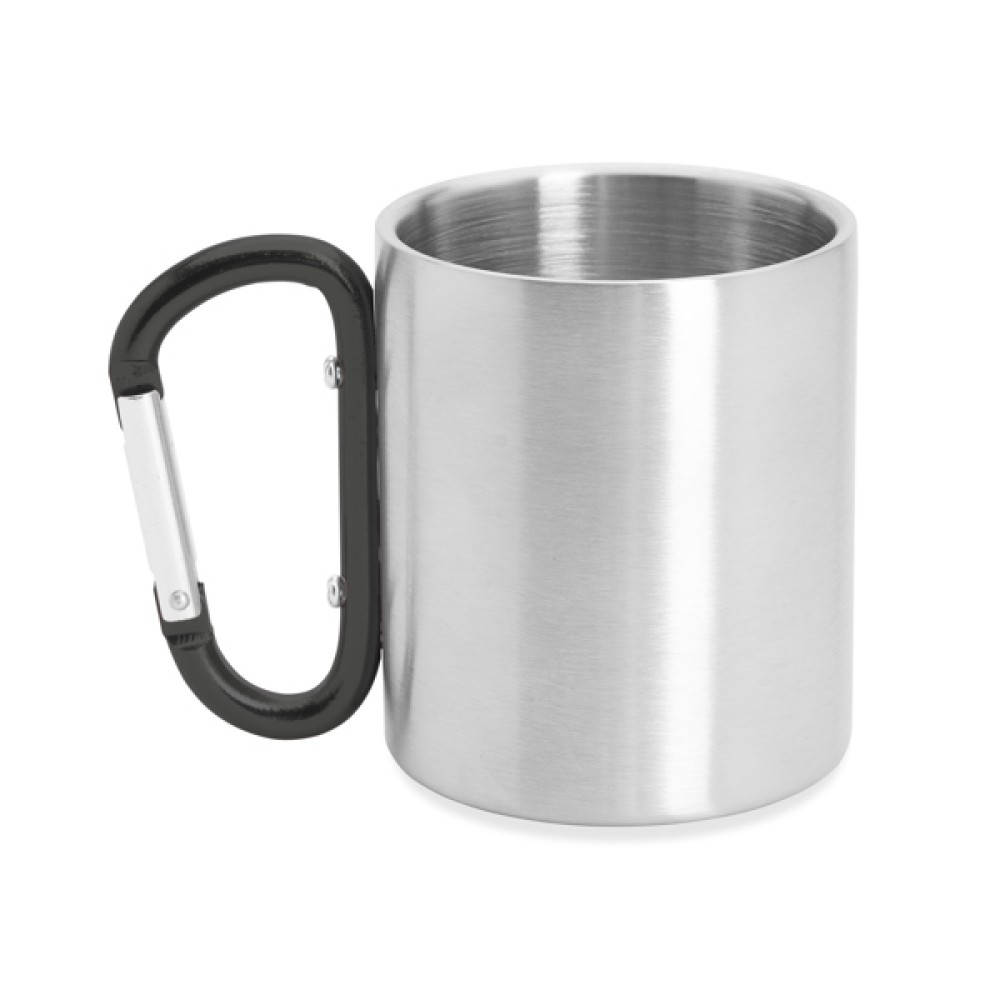 Металлический кружка с двойными стенками и ручкой-карабином идеально подходит для переноски. Доступен в нескольких цветах. Вместимость 230 мл.