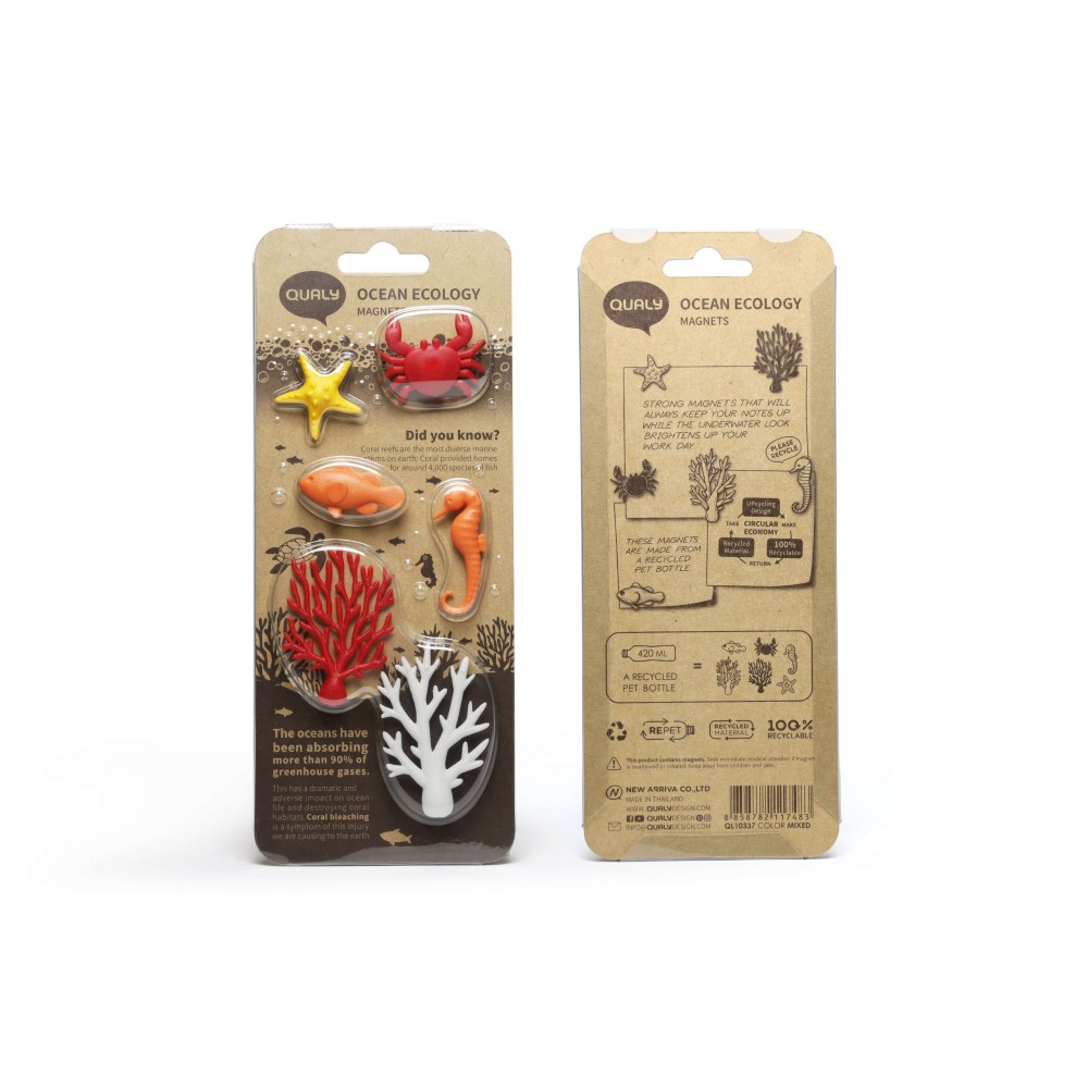 Магниты на холодильник в морской тематике – практичные держатели для заметок и украшения со смыслом. Фигурки морских обитателей – это напоминание о необходимости заботиться об окружающей среде, сократить выбросы отходов в мировой океан, замедлить климатические изменения. Магниты произведены из переработанной пластиковой бутылки. Материал прочен и безопасен для окружающей среды. Страна изготовитель — Таиланд. Страна бренда — Таиланд.