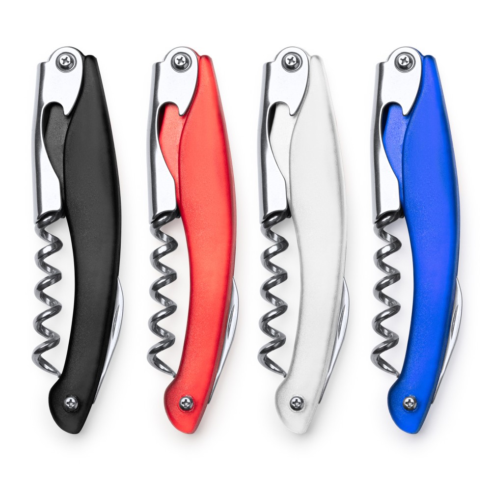 Классический штопор из нержавеющей стали со складным лезвием и открывалкой для бутылок.